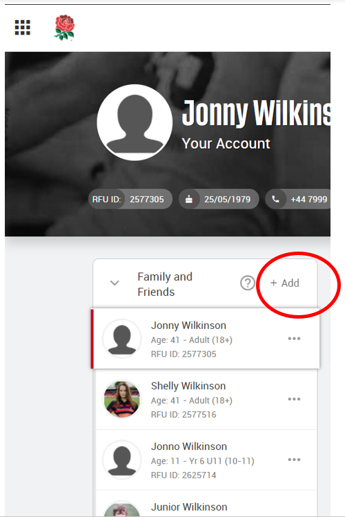 To add family members, and link them to linked to your account, log into GMS, select ‘add’ on your dashboard within the Family and Friends widget.