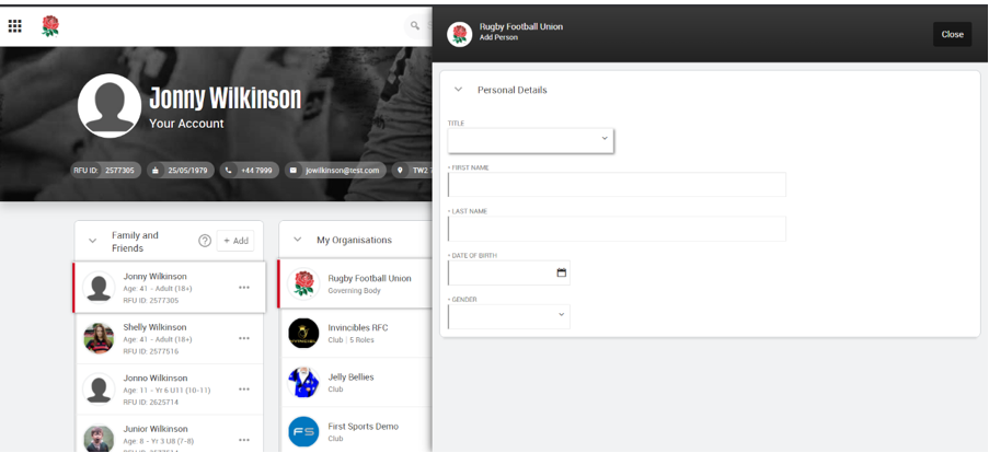 This will bring up the pop screen to fill in the details of the new member, such as name and date of birth.