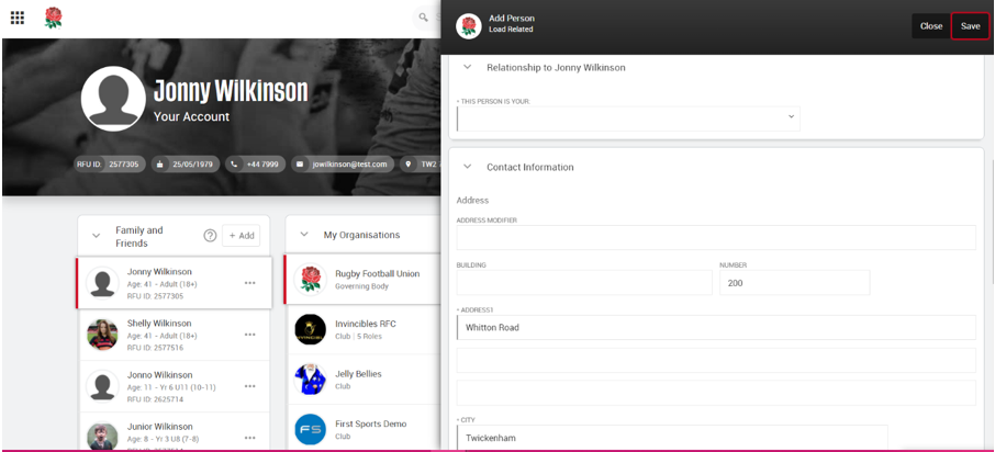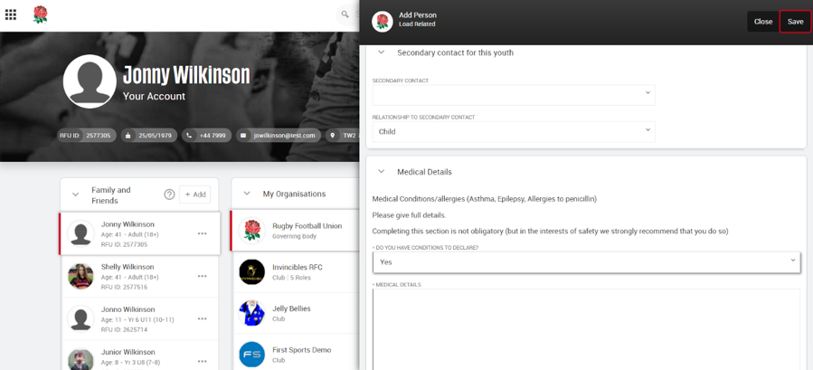 Once you’ve added in the basic information you will be then able to add more information such as the relationship you have with the person you are adding. This is where you will also add any medical information and secondary school information if you are adding a child.